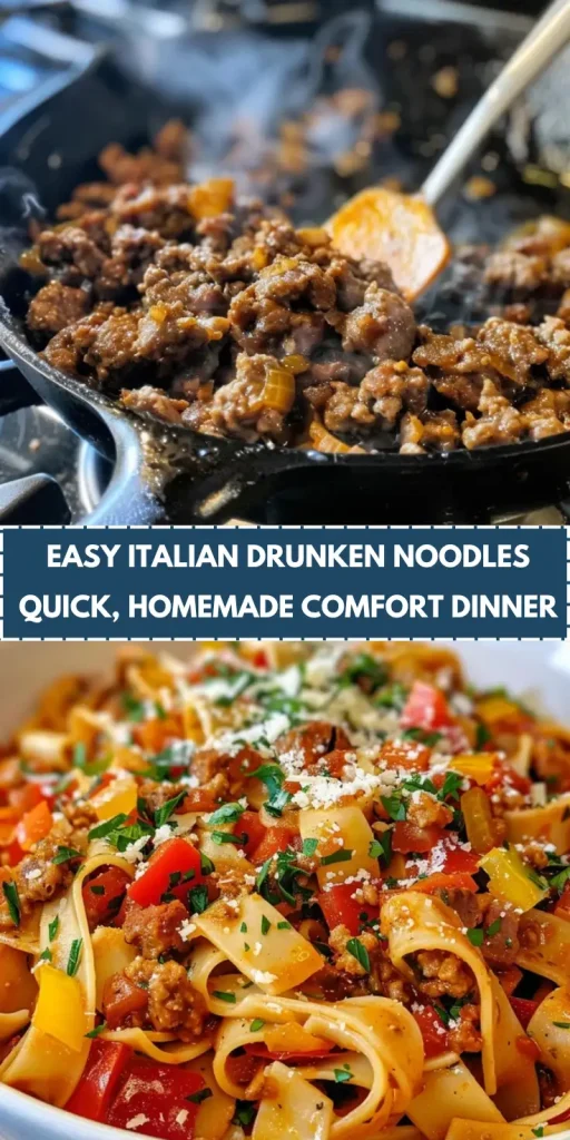 Cooking Italian Drunken Noodles is more than just preparing a meal; it’s about creating a moment of joy for your family. The rich flavors and comforting textures come together to make a dish that feels like a warm hug on a plate. I love how this recipe allows for creativity, letting you adapt it to your family’s tastes. Whether it’s a busy weeknight or a special gathering, these noodles are sure to impress. So, roll up your sleeves, gather your loved ones, and enjoy the delightful experience of sharing a homemade meal that brings everyone together!